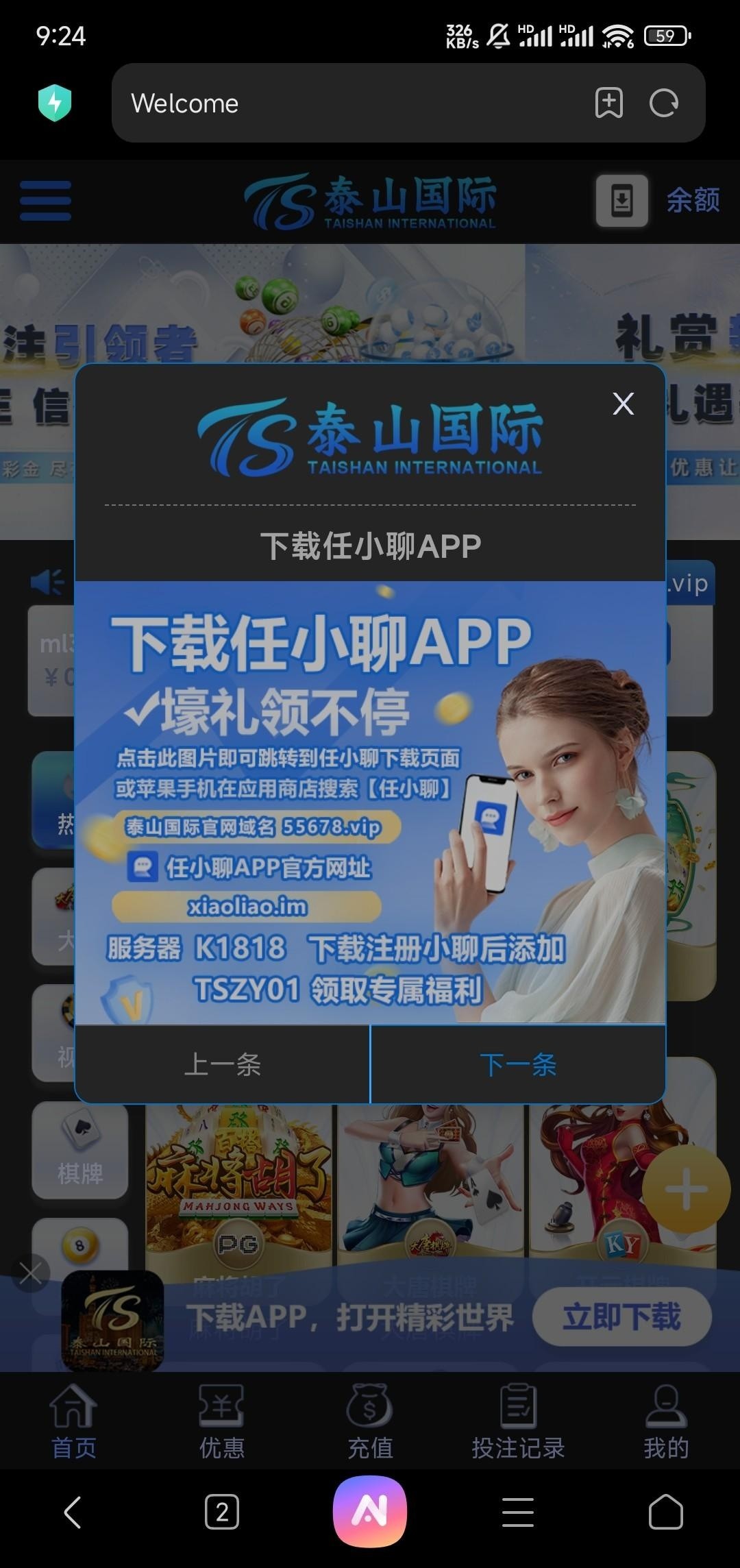 【泰山国际】短信彩金
