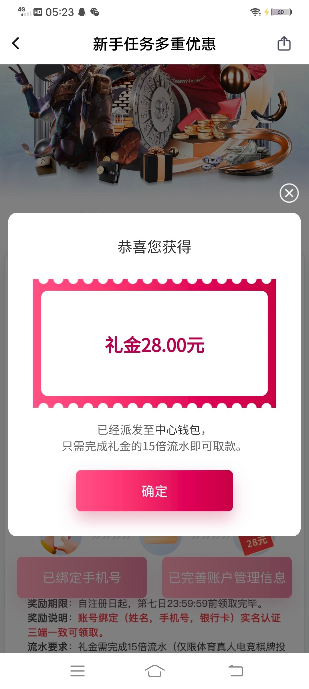绑卡手机号优惠活动自领28 15倍流水可以真人视讯我打到100没提