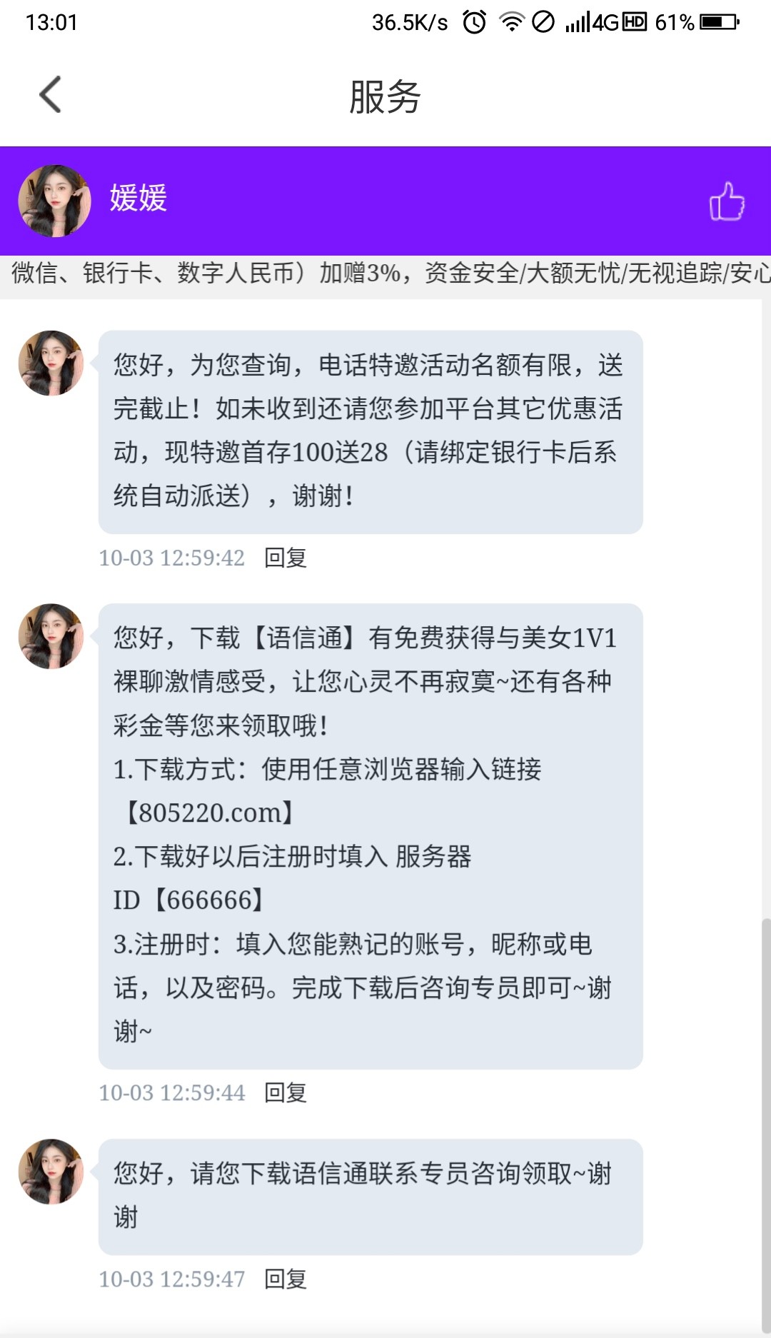 电话特邀下载聊天软件送38