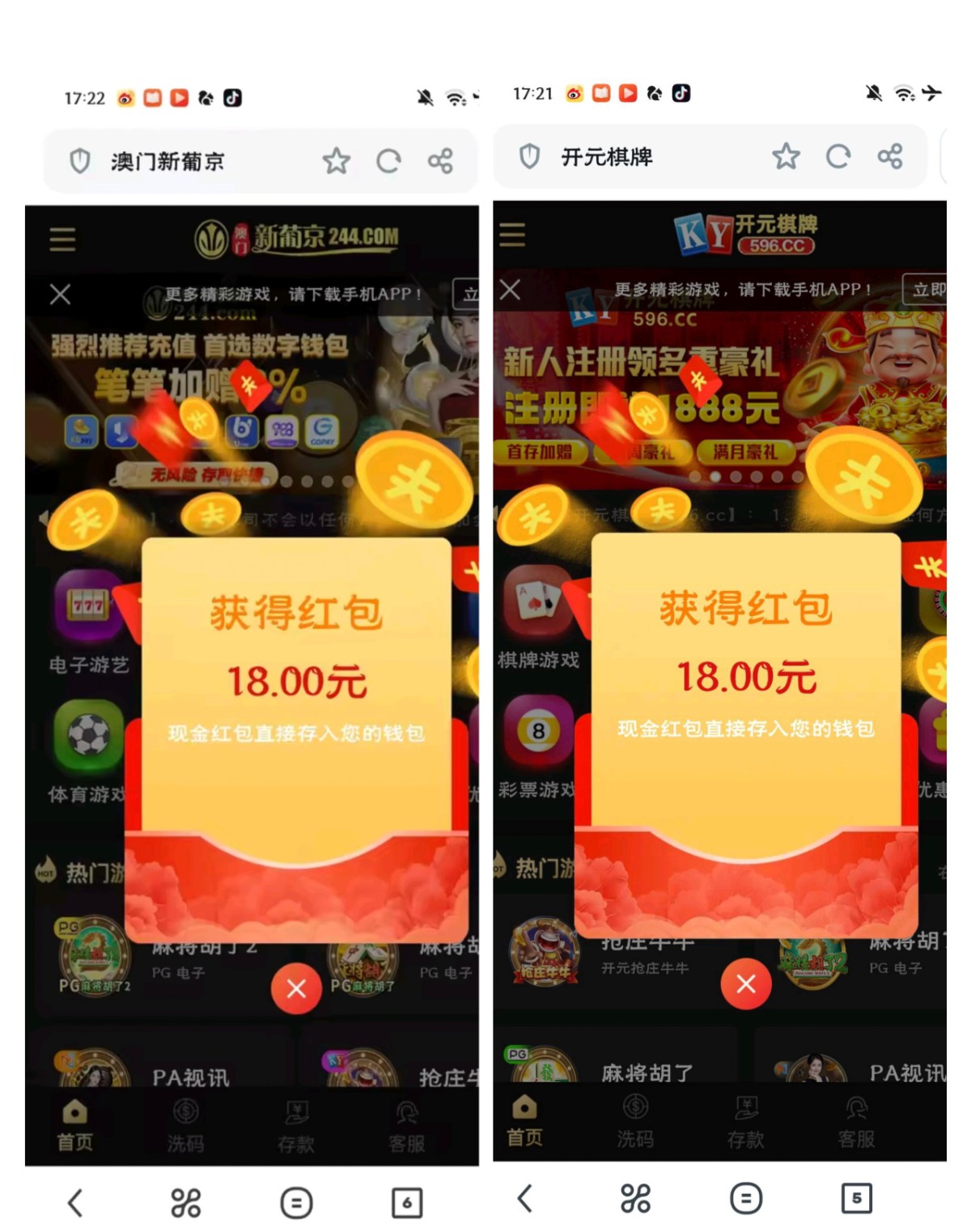 244.com,596.cc,561.com,558.com,这四个台子又送彩金了,打出来充个10块钱,百分之80能到账