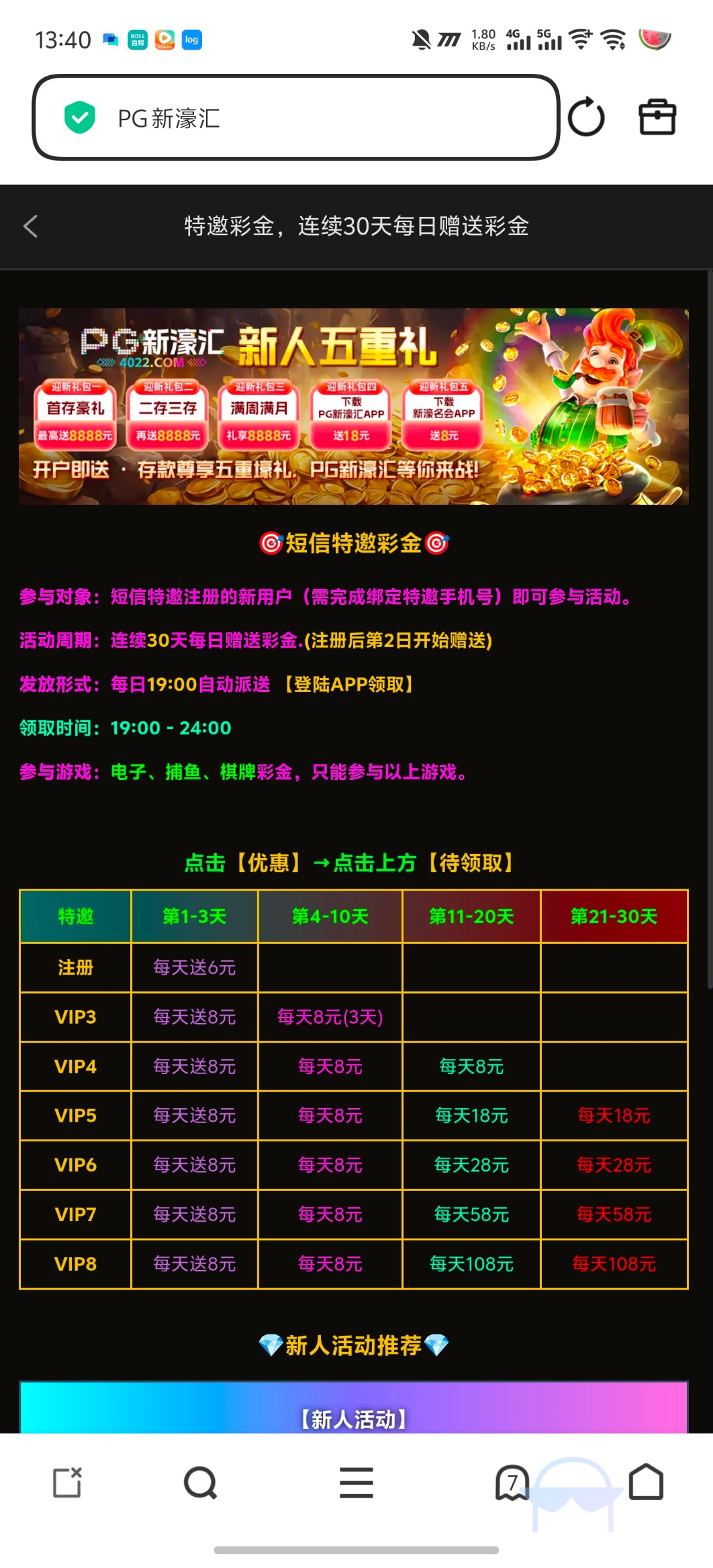 【PG新濠汇】连续送三天8元