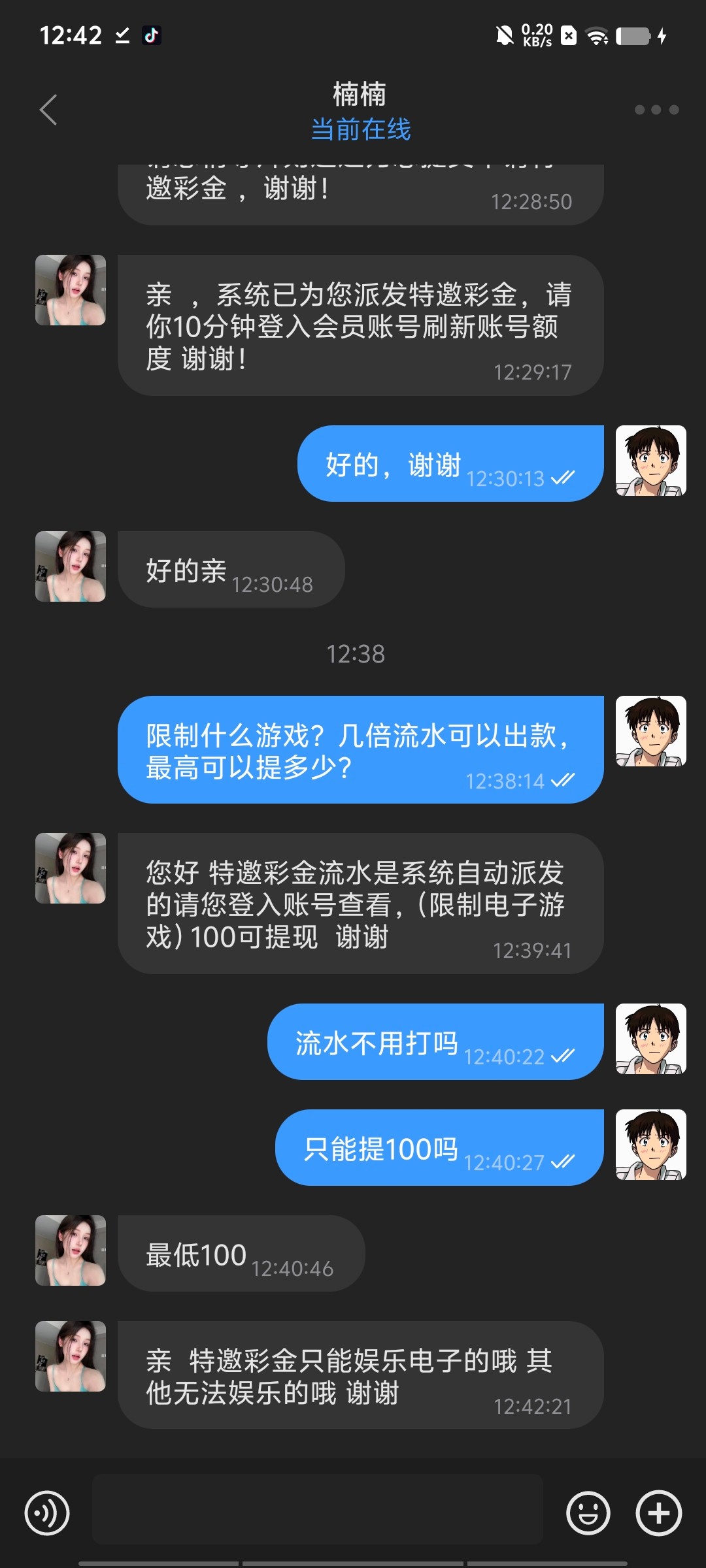 我接电话送了58充100才可以玩游戏 充100又送28 要打1000的流水我下了1300