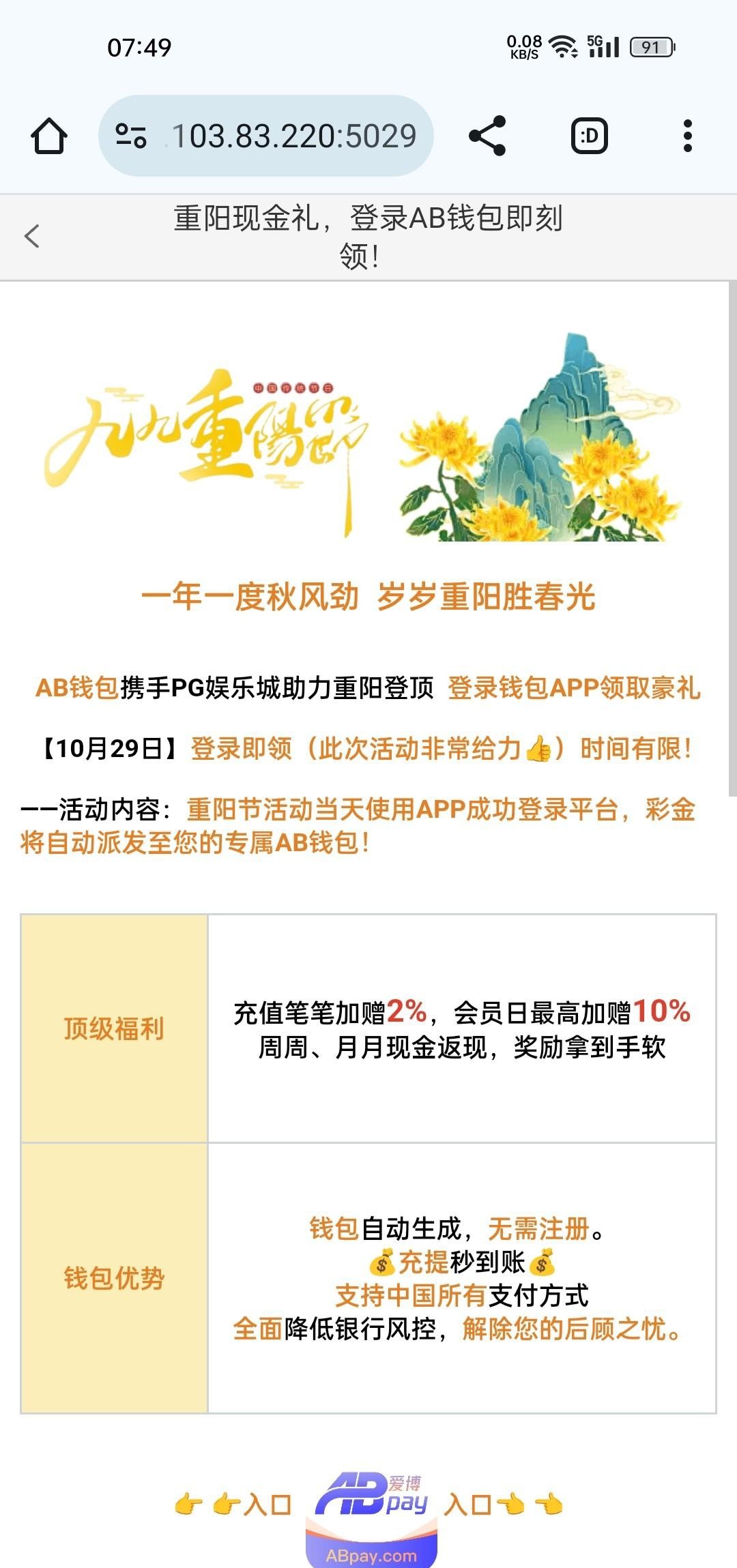 008.vip,008.com,3615.com,90.cc,5555.cc这几个台子都有重阳登录彩金,是直接派送到ab钱包里面
