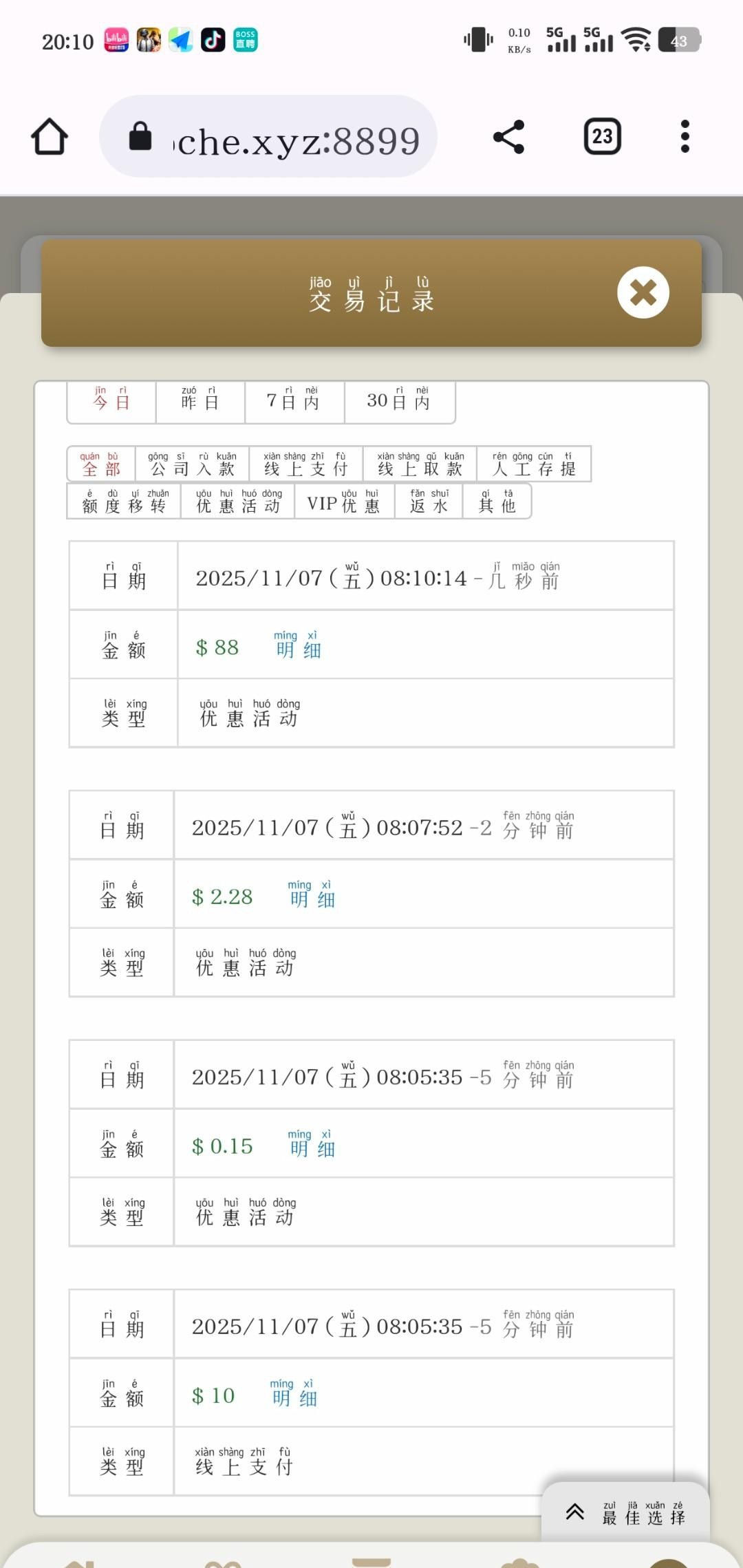 以前有过存款的可以看一下,本来没想着过的居然给我过了,半年没存款的存10块钱送88,自己看来吧要历史有充值的打出来点老哥,搞瓶牛子喝喝
