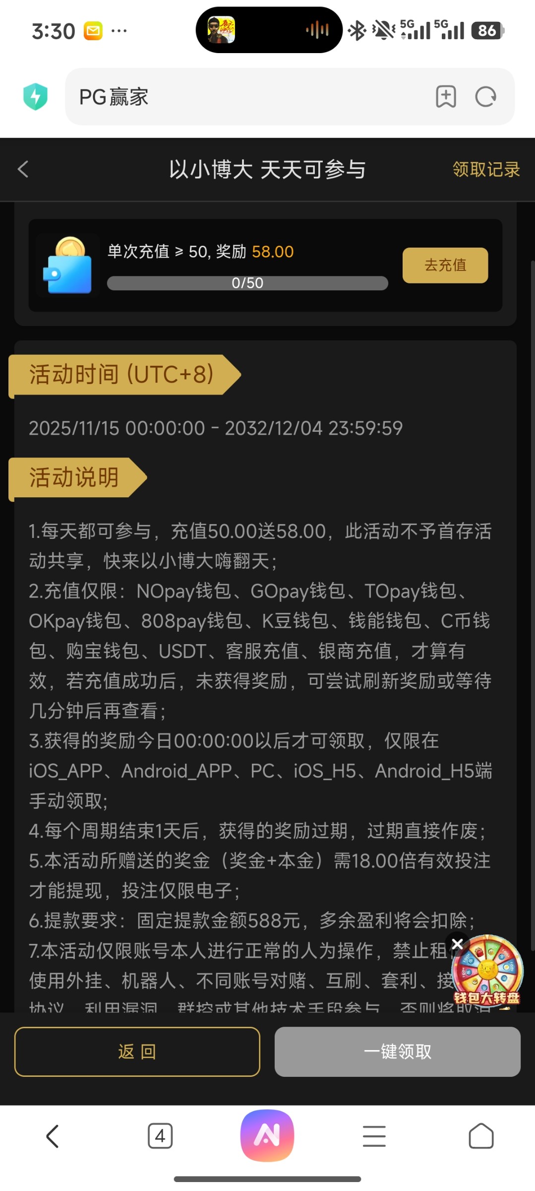 之前有号玩过的觉得自己能打上去的话可以去玩玩 每天都可以参与一次 想玩的老哥可以上 我出款了