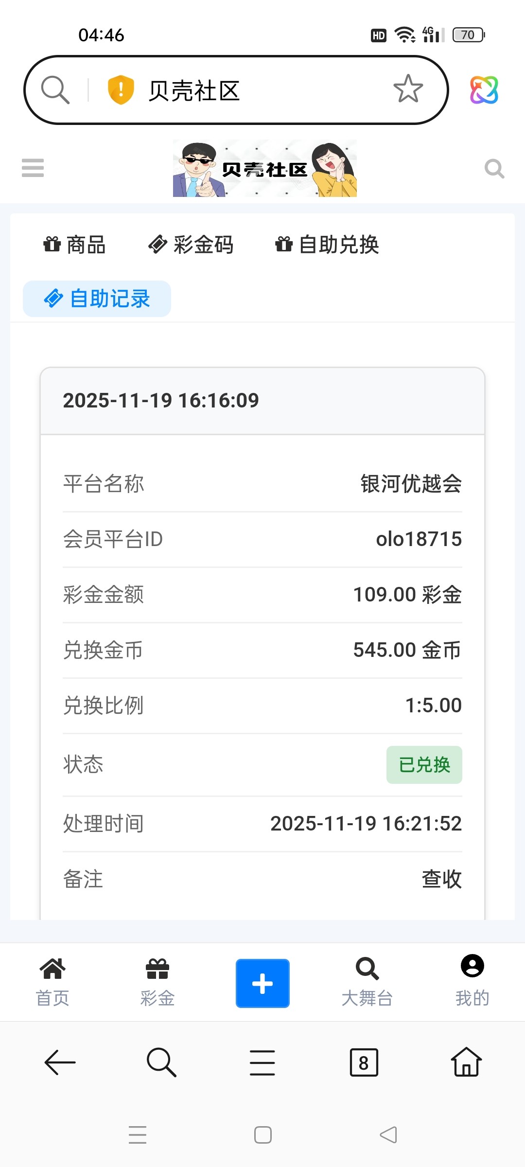 贝壳真的好好,金币换的彩金