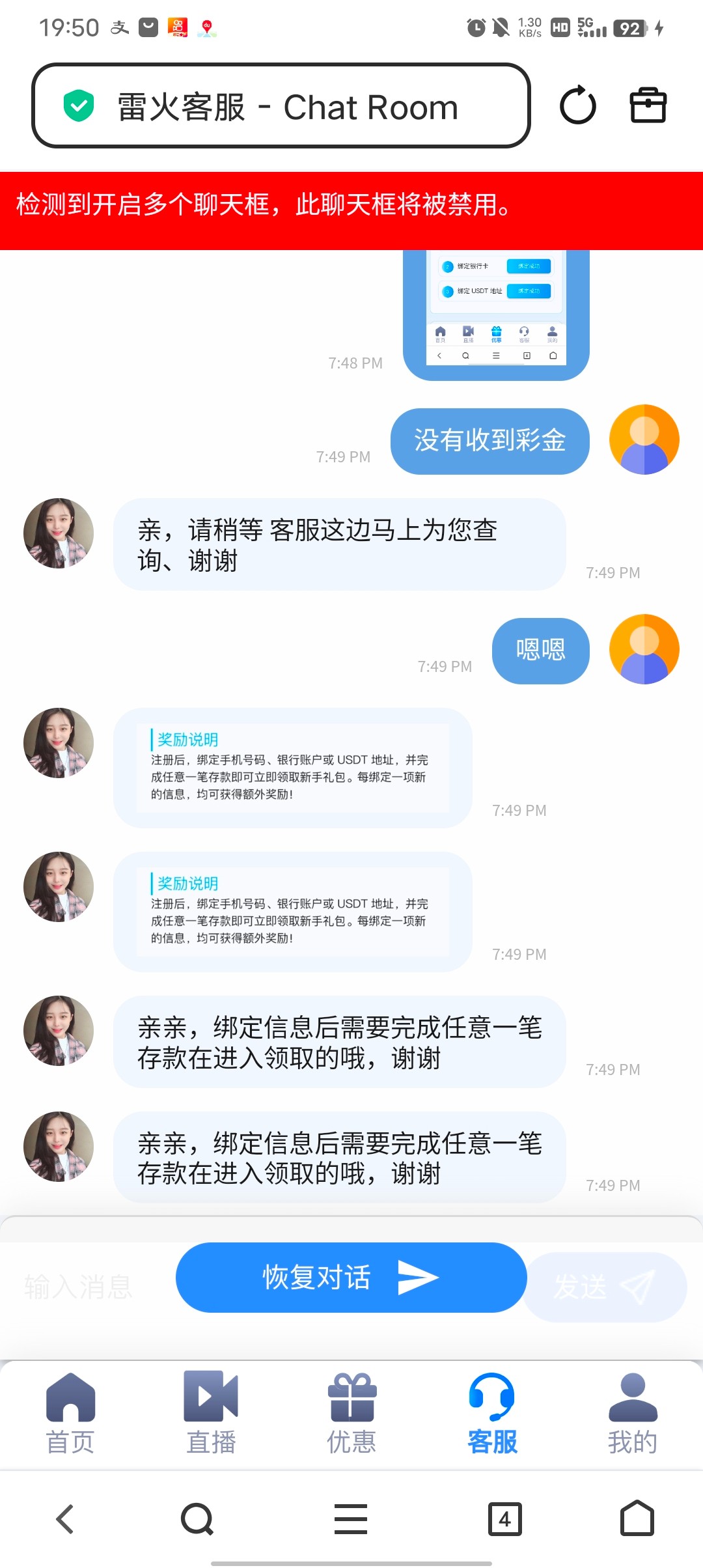 我那个线下客服旺旺被封了,找不到人了