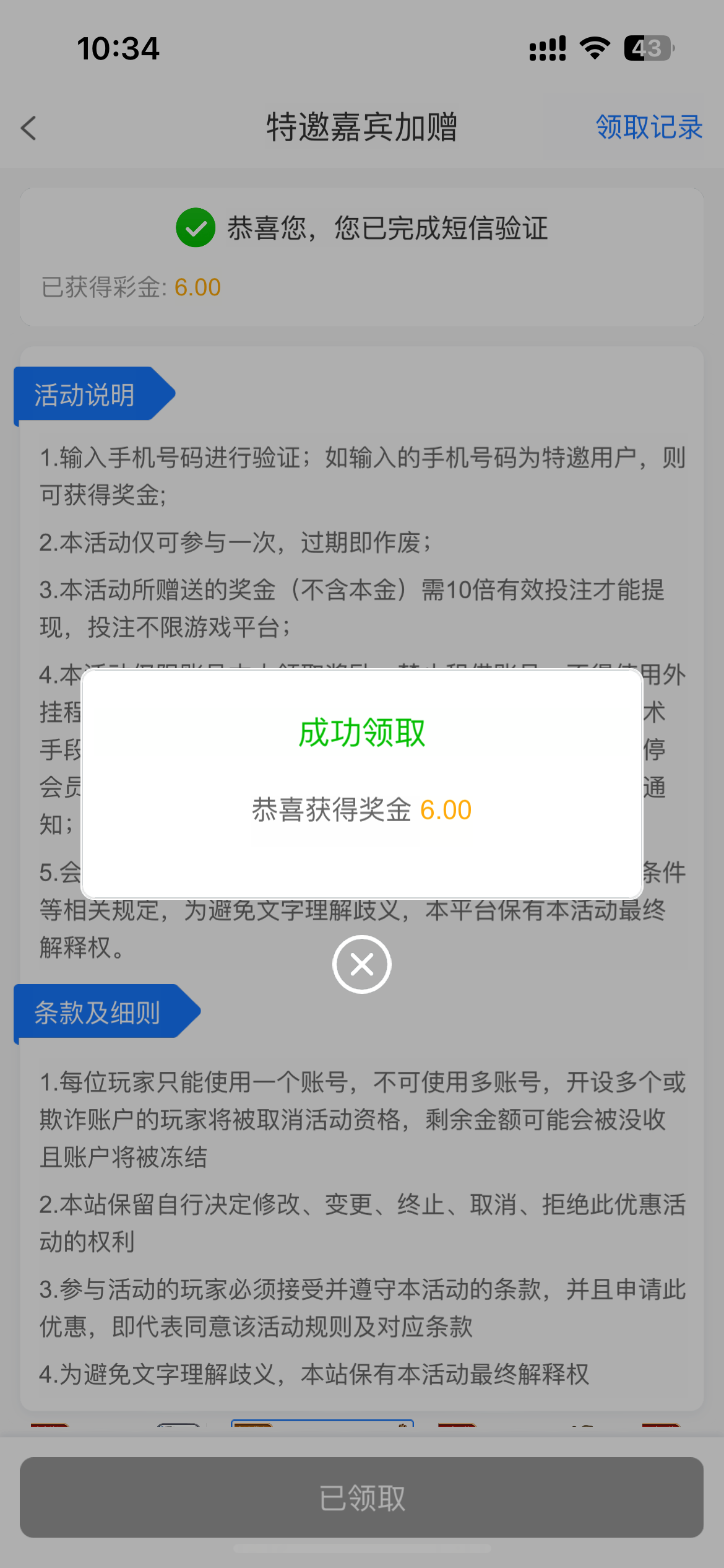 碰瓷特邀彩金6块  有号的可以上去看看  没有号的先注册  不要充值