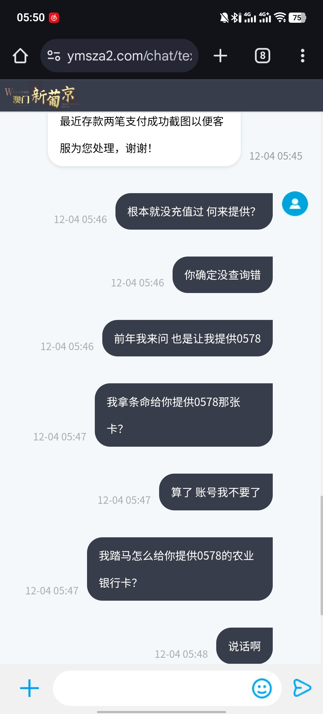 我从来就没有 0578的农业银行卡 我脑海里 就一张工行和建行用最久的 农行没来过 只想让我提供身份证 照片 ,现在狗庄都这么恶心人 出款各种理由卡